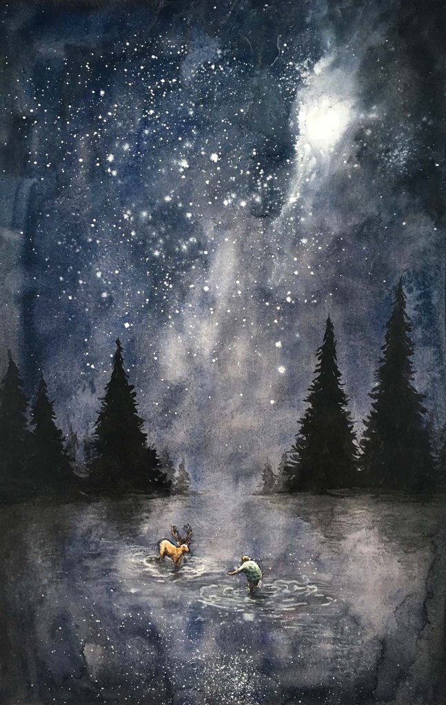 Série de peintures techniques mixtes intitulée « Nuit blanche » réalisée en 2019.